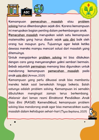 solving harus dikembangkan sejak dini. Karena kemampuan