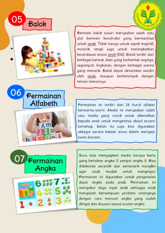 kecerdasan emosi anak (EQ). Balok terdiri dari