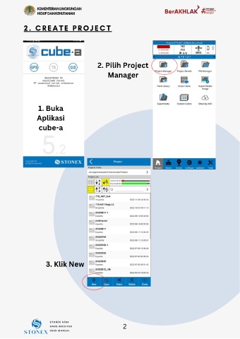 2. CREATE PROJECT 2. Pilih Project Manager 1. Buka Aplikasi cube-a 3. Klik New STONEK S580 GNSS RECEI VER 2 USER MANUAL