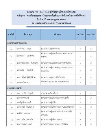 ล าดับที่ ชื่อ – สกุล ต าแหน่ง Per Test Post Test