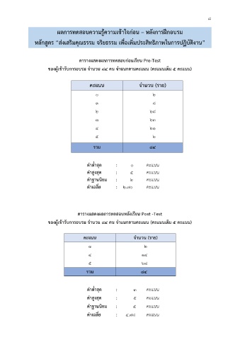 ผลการทดสอบความรู้ความเข้าใจก่อน – หลังการฝึกอบรม