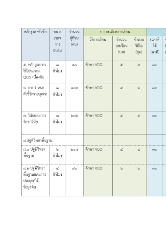 เวลา ผู้ที่จบ วิธีการเรียน จำนวน จำนวน เวลาที่ จำนวนครั้ง จำนวน เวลาที่ จำนวนที่ จำนวน เกณฑ์ผ่าน เกณฑ์ คะแนน