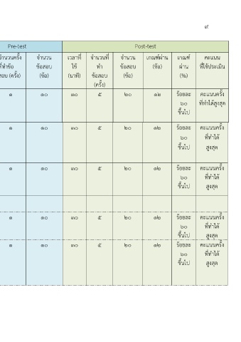 เวลา ผู้ที่จบ วิธีการเรียน จำนวน จำนวน เวลาที่ จำนวนครั้ง จำนวน เวลาที่ จำนวนที่ จำนวน เกณฑ์ผ่าน เกณฑ์ คะแนน