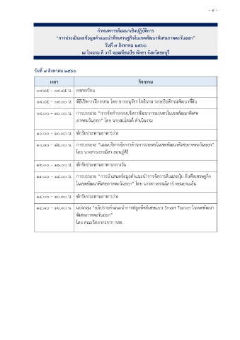 14.30 – 16.30 น. แบ่งกลุ่ม “อภิปรายคำแนะนำการปลูกพืชพิเศษแบบ Smart Farmer ในเขตพัฒนา