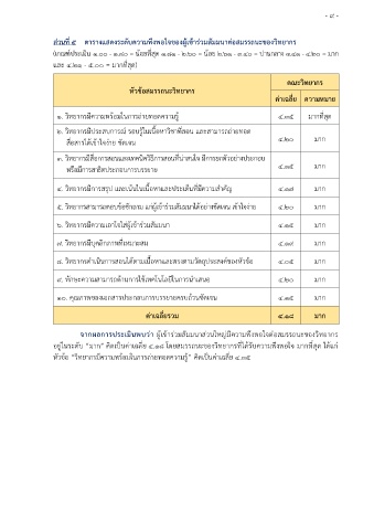 (เกณฑ์ประเมิน 1.00 - 1.80 = น้อยที่สุด 1.81 - 2.60 = น้อย 2.61 - 3.40 = ปานกลาง 3.41 - 4.20 = มาก
