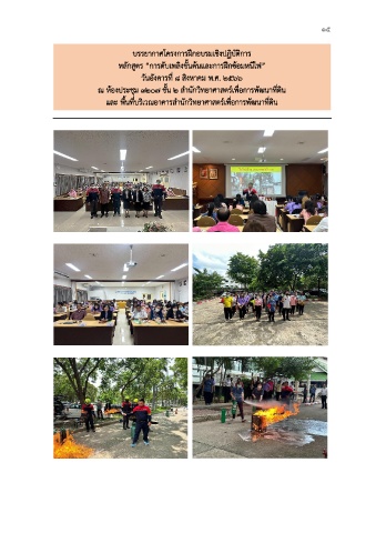 15 บรรยากาศโครงการฝึกอบรมเชิงปฏิบัติการ หลักสูตร “การดับเพลิงขั้นต้นและการฝึกซ้อมหนีไฟ” วันอังคารที่ 8 สิงหาคม พ.ศ. 2566 ณ ห้องประชุม 3207 ชั้น 2 สำนักวิทยาศาสตร์เพื่อการพัฒนาที่ดิน และ พื้นที่บริเวณอาคารสำนักวิทยาศาสตร์เพื่อการพัฒนาที่ดิน