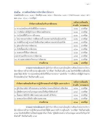 4.63 โดยหัวขอทมความพึงพอใจสูงสุด ไดแก หัวขอ “ผูจัดมีความสามารถในการดูแล และแกไขปญหาได