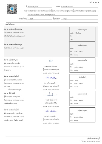เรื่อง ขออนุมัติจัดโครงการฝึกอบรมและค่าใช้จ่ายในการฝึกอบรมหลักสูตรภาวะผู้นำกับการบริหารการเปลี่ยนแปลง (