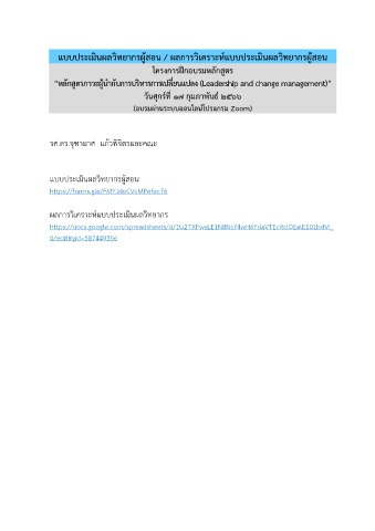 แบบประเมินผลวิทยากรผูสอน / ผลการวิเคราะหแบบประเมินผลวิทยากรผสอน