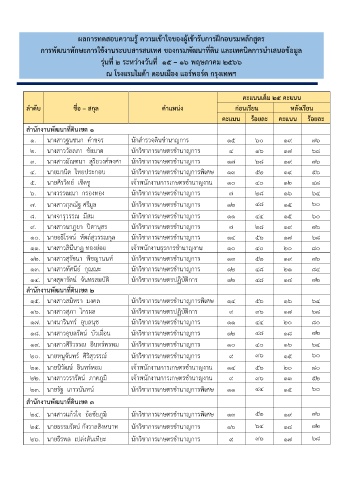 ผลการทดสอบความรูຌ༛ความขຌา฿จของผูຌขຌารับการฝຄกอบรมหลักสูตร༛