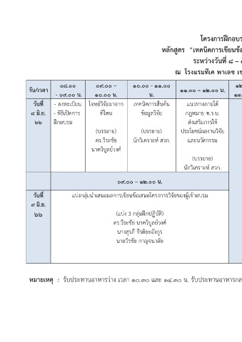หมายหต༛༛: รับประทานอาหารวาง༛วลา༛10.30༛ละ༛14.30༛น.༛รับประทานอาหารกลางวัน༛วลา༛12.00༛น