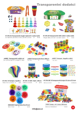 411396 14 Transpar. lopatice 411396 12 GEO tijela 60kom 411396 08/10 Transparentni brojevi ili slova 52 kom