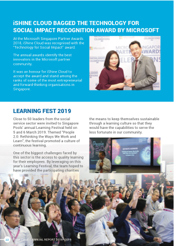 At the Microsoft Singapore Partner Awards 2018, iShine Cloud was recognised with the “Technology for Social Impact” award.