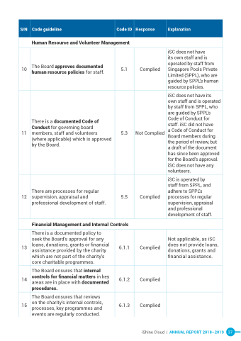 a Code of Conduct for Board members during the period of review, but a draft of the document has since been approved for the Board’s approval. iSC does not have any volunteers.