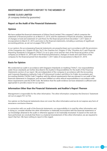 We have audited the nancial statements of iShine Cloud Limited (“the company”) which comprise the statement of nancial position as at March 31, 2019, and the statement of nancial activities, statement