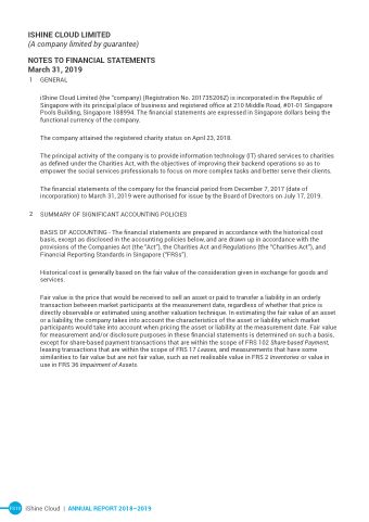iShine Cloud Limited (the “company) (Registration No. 201735206Z) is incorporated in the Republic of Singapore with its principal place of business and registered o ce at 210 Middle Road, #01-01 Singapore Pools Building, Singapore 188994. The nancial statements are expressed in Singapore dollars being the functional currency of the company.