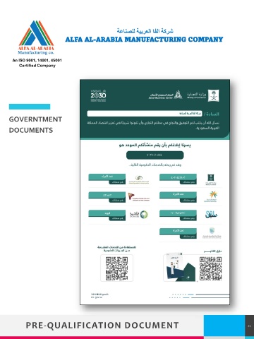 ةعانصلل ةيبرعلا افلا ةكرش ALFA AL-ARABIA MANUFACTURING COMPANY An ISO 9001, 14001, 45001 Certified Company GOVERNTMENT DOCUMENTS PRE-QUALIFICATION DOCUMENT TREY 21 research