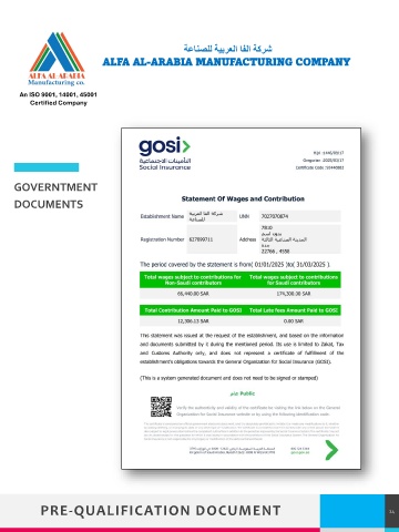 ةعانصلل ةيبرعلا افلا ةكرش ALFA AL-ARABIA MANUFACTURING COMPANY An ISO 9001, 14001, 45001 Certified Company GOVERNTMENT DOCUMENTS PRE-QUALIFICATION DOCUMENT TREY 24 research