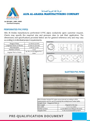 Alfa Al Arabia Slotted PVC pipes are produced according to RDA