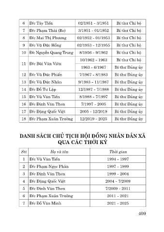 9 Đ/c Vũ Đức Hồng 02/1953 - 12/1955 Bí thư Chi bộ
