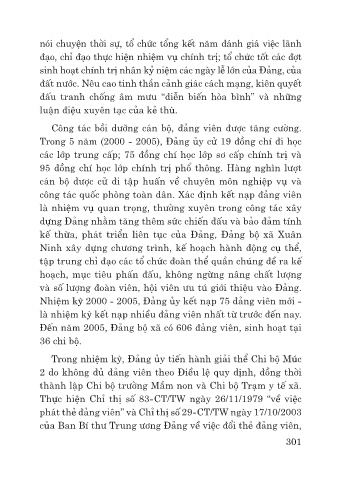 Đến năm 2005, Đảng bộ xã có 606 đảng viên, sinh hoạt tại