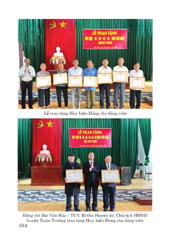 Lễ trao tặng Huy hiệu Đảng cho đảng viên Đồng chí Bùi Văn Hảo - TUV, Bí thư Huyện ủy, Chủ tịch HĐND huyện Xuân Trường trao tặng Huy hiệu Đảng cho đảng viên 334