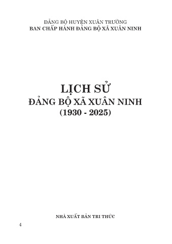 ĐẢNG BỘ HUYỆN XUÂN TRƯỜNG BAN CHẤP HÀNH ĐẢNG BỘ XÃ XUÂN NINH LỊCH SỬ ĐẢNG BỘ XÃ XUÂN NINH (1930 - 2025) NHÀ XUẤT BẢN TRI THỨC 4