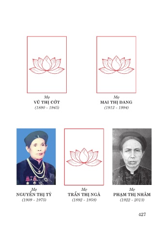 Mẹ Mẹ VŨ THỊ CỚT MAI THỊ ĐANG (1890 - 1945) (1912 - 1994) Mẹ Mẹ Mẹ NGUYỄN THỊ TỲ TRẦN THỊ NGÀ PHẠM THỊ NHÂM (1909 - 1975) (1892 - 1958) (1922 - 2013) 427