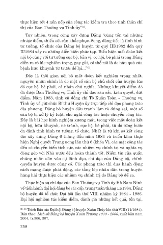 (1), (2) Trích Báo cáo Đại hội Đảng bộ huyện Xuân Thủy lần thứ VIII (11/1984).