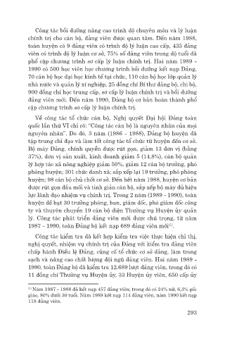(1) Năm 1987 - 1988 đã kết nạp 457 đảng viên; trong đó có 24% nữ, 6,3% gốc