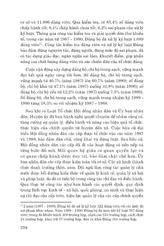 đảng bộ, chi bộ yếu từ 12,2% (năm 1987) xuống 7,5% (năm 1990).