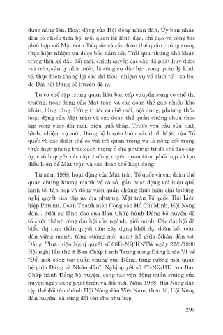 Từ năm 1988, hoạt động của Mặt trận Tổ quốc và các đoàn thể