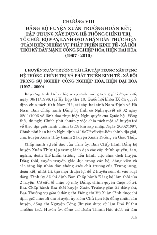 I. HUYỆN XUÂN TRƯỜNG TÁI LẬP, TẬP TRUNG XÂY DỰNG