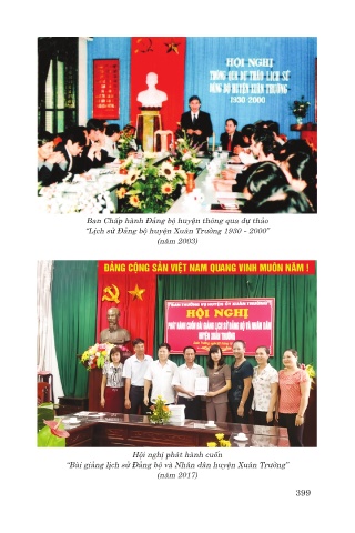 Ban Chấp hành Đảng bộ huyện thông qua dự thảo “Lịch sử Đảng bộ huyện Xuân Trường 1930 - 2000” (năm 2003) Hội nghị phát hành cuốn “Bài giảng lịch sử Đảng bộ và Nhân dân huyện Xuân Trường” (năm 2017) 399