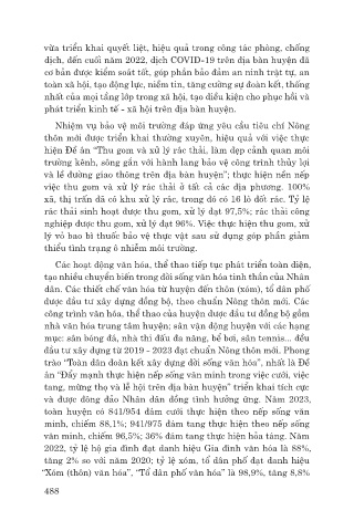 2022, tỷ lệ hộ gia đình đạt danh hiệu Gia đình văn hóa là 88%,