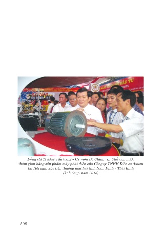 Đồng chí Trương Tấn Sang - Ủy viên Bộ Chính trị, Chủ tịch nước thăm gian hàng sản phẩm máy phát điện của Công ty TNHH Điện cơ Axuzu tại Hội nghị xúc tiến thương mại hai tỉnh Nam Định - Thái Bình (ảnh chụp năm 2015) 508