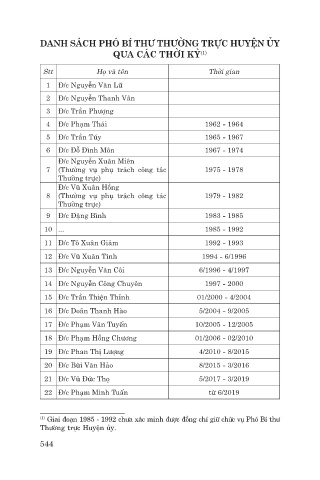 DANH SÁCH PHÓ BÍ THƯ THƯỜNG TRỰC HUYỆN ỦY