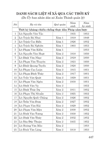 DANH SÁCH LIỆT SĨ XÃ QUA CÁC THỜI KỲ
