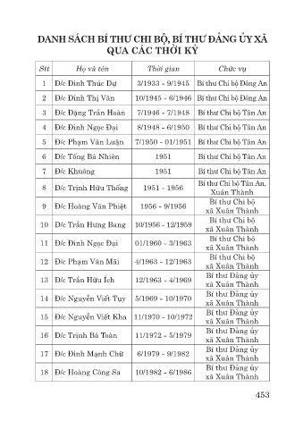 1 Đ/c Đinh Thúc Dự 3/1933 - 9/1945 Bí thư Chi bộ Đông An