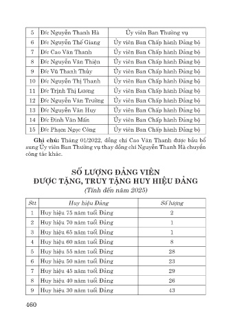 Ghi chú: Tháng 01/2022, đồng chí Cao Văn Thanh được bầu bổ