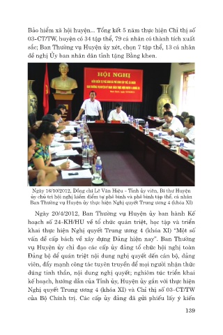 Ngày 16/10/2012, Đồng chí Lê Văn Hiệu - Tỉnh ủy viên, Bí thư Huyện