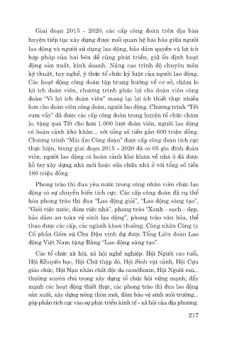 Giai đoạn 2015 - 2020, các cấp công đoàn trên địa bàn