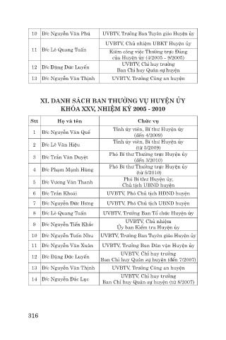 XI. DANH SÁCH BAN THƯỜNG VỤ HUYỆN ỦY