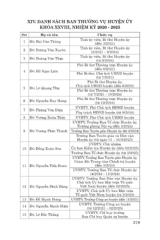 XIV. DANH SÁCH BAN THƯỜNG VỤ HUYỆN ỦY
