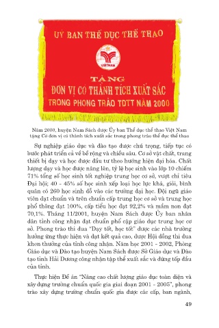 Năm 2000, huyện Nam Sách được Ủy ban Thể dục thể thao Việt Nam
