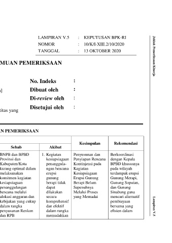 Lampiran V.5 Contoh Pengisian Matriks Temuan Pemeriksaan LAMPIRAN V.5 : KEPUTUSAN BPK-RI