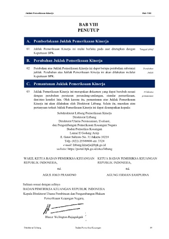 juklak. Perubahan atas Juklak Pemeriksaan Kinerja ini akan dilakukan melalui Juklak
