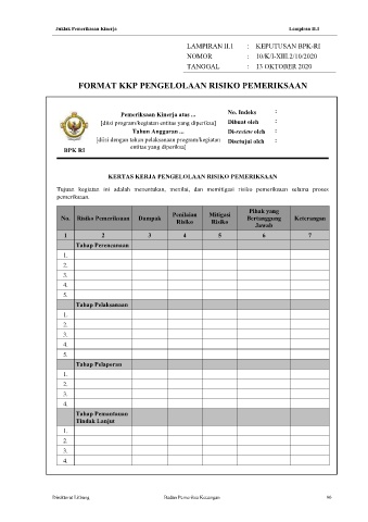 Lampiran II.1 Format KKP Pengelolaan Risiko LAMPIRAN II.1 : KEPUTUSAN BPK-RI