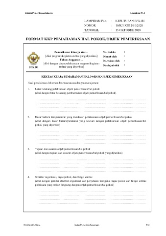 Lampiran IV.4 Format KKP Pemahaman Hal LAMPIRAN IV.4 : KEPUTUSAN BPK-RI