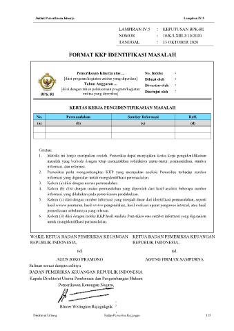 Lampiran IV.5 Format KKP Identifikasi Masalah LAMPIRAN IV.5 : KEPUTUSAN BPK-RI